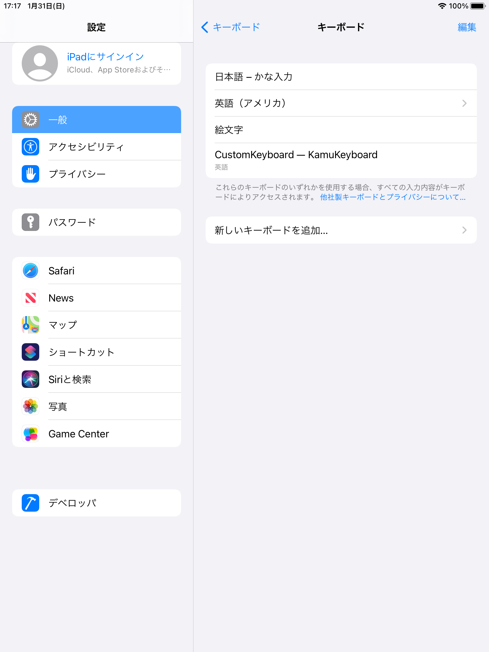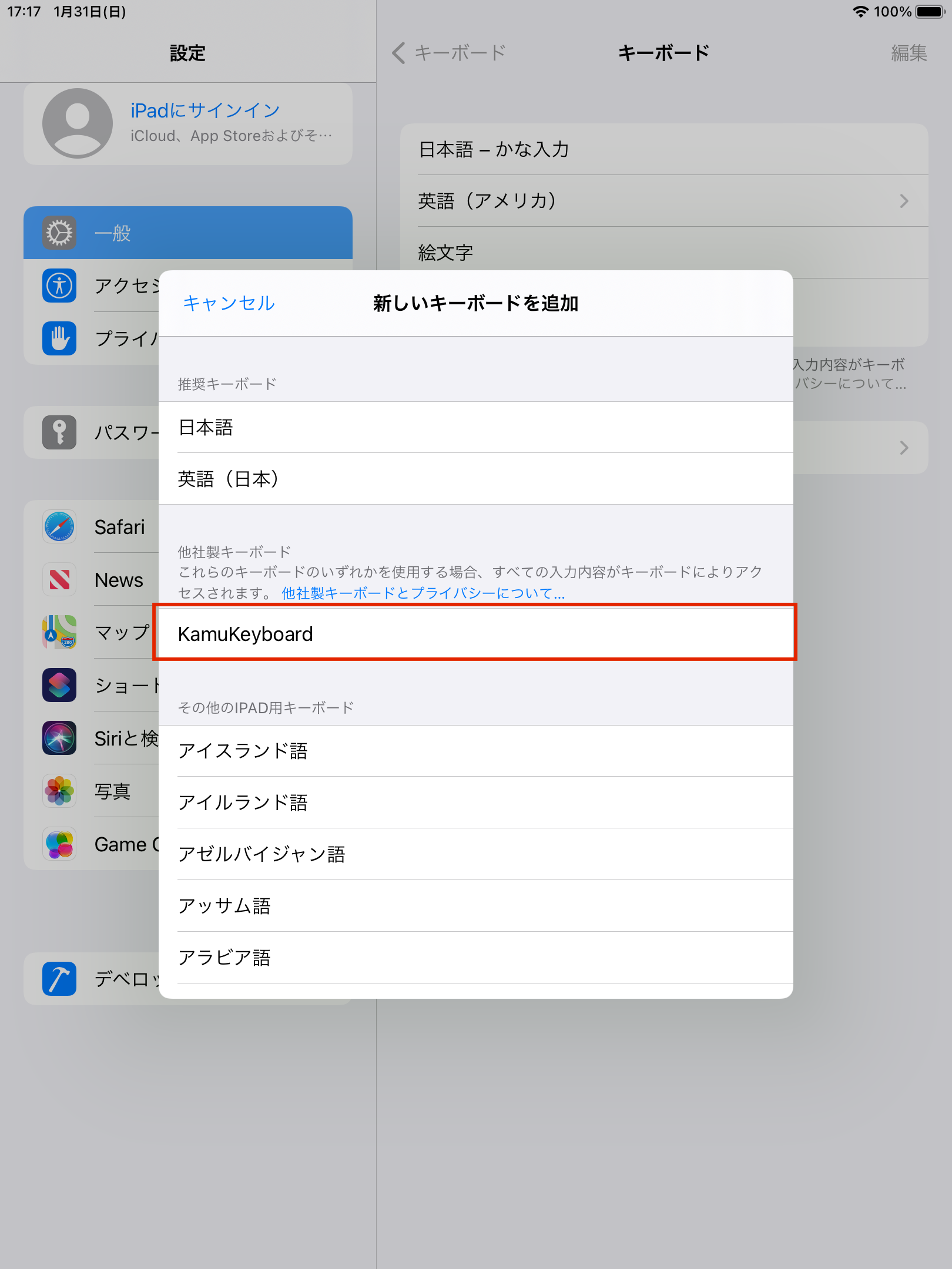 本体のソフトウエアキーボードアプリは、設定のキーボードの追加から入れる必要があります。